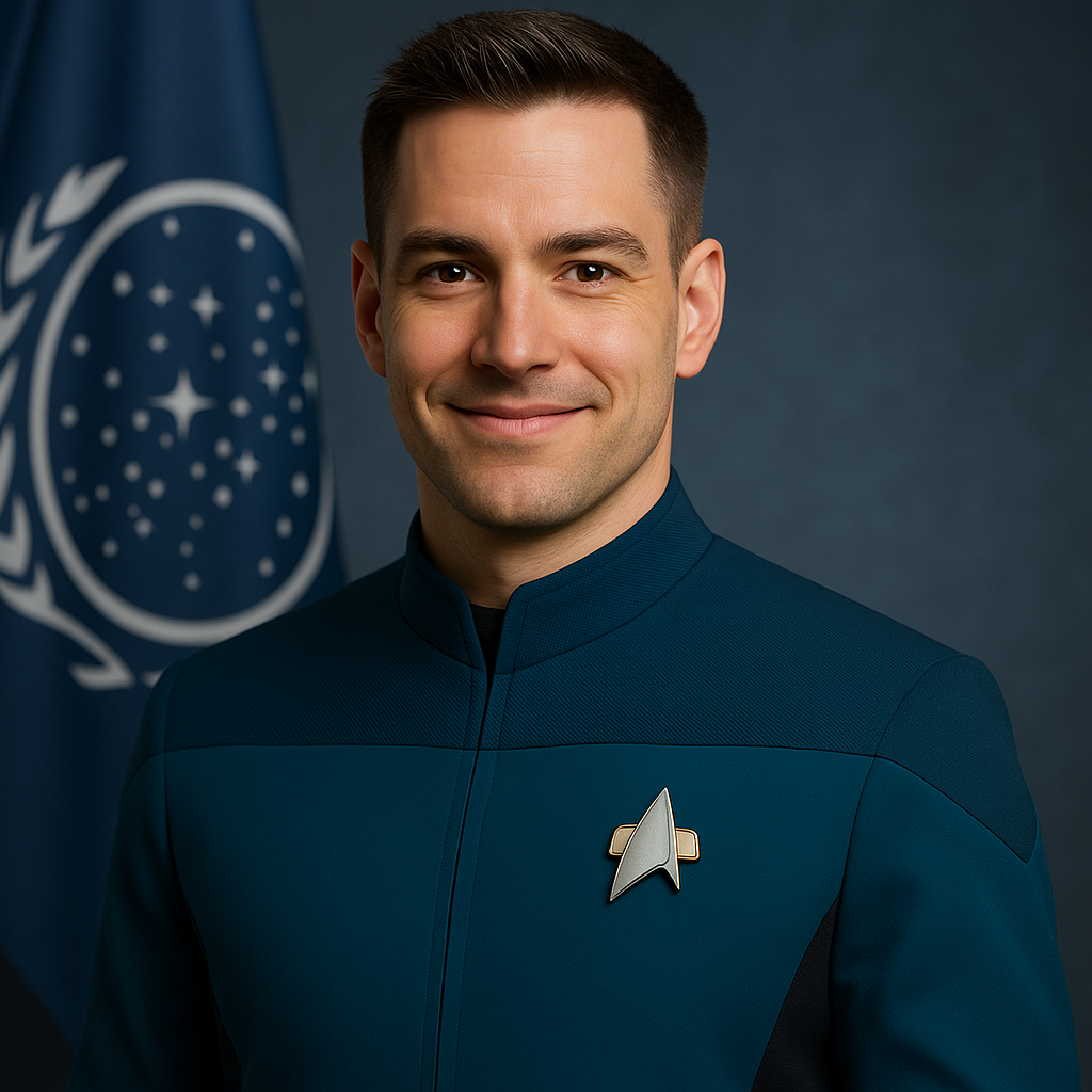 Physical Description | Standing at 6 feet tall, his frame one of a track athlete, Theodor looks like someone has copied him from a Starfleet recruitment poster. Immaculately groomed at almost all times, not just his uniforms but his off duty clothing choices completely spotless always, there is rarely a hair out of place in his appearance. |
