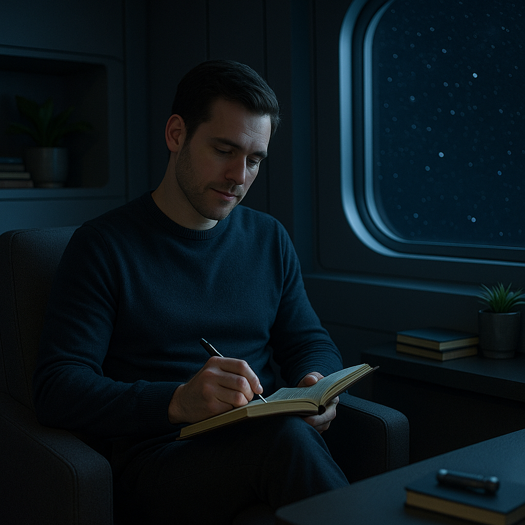 Hobbies & Interests | Theodor enjoys nothing more off duty than to turn on some music - mostly old Earth classical - and write by hand. Many shelves in his quarters can be found containing old leather bound journals stretching back to his medical school days. He also has quite the collection of field medkits with some of the oldest stretching back as far as the NX program right up to the Dominion war and modern times. He is a quite talented musician, playing the Piano, Cello and Guitar although rarely in front of anybody - one of the few activities that draw a shyness from him should anybody happen to be listening. To keep himself in shape he likes to Run, Cycle, Swim and just about anything he is able to do alone where he can turn off his mind for an hour or two and focus on himself. He is also more than happy to cook should time and opportunity allow although this is something he is still working on. |