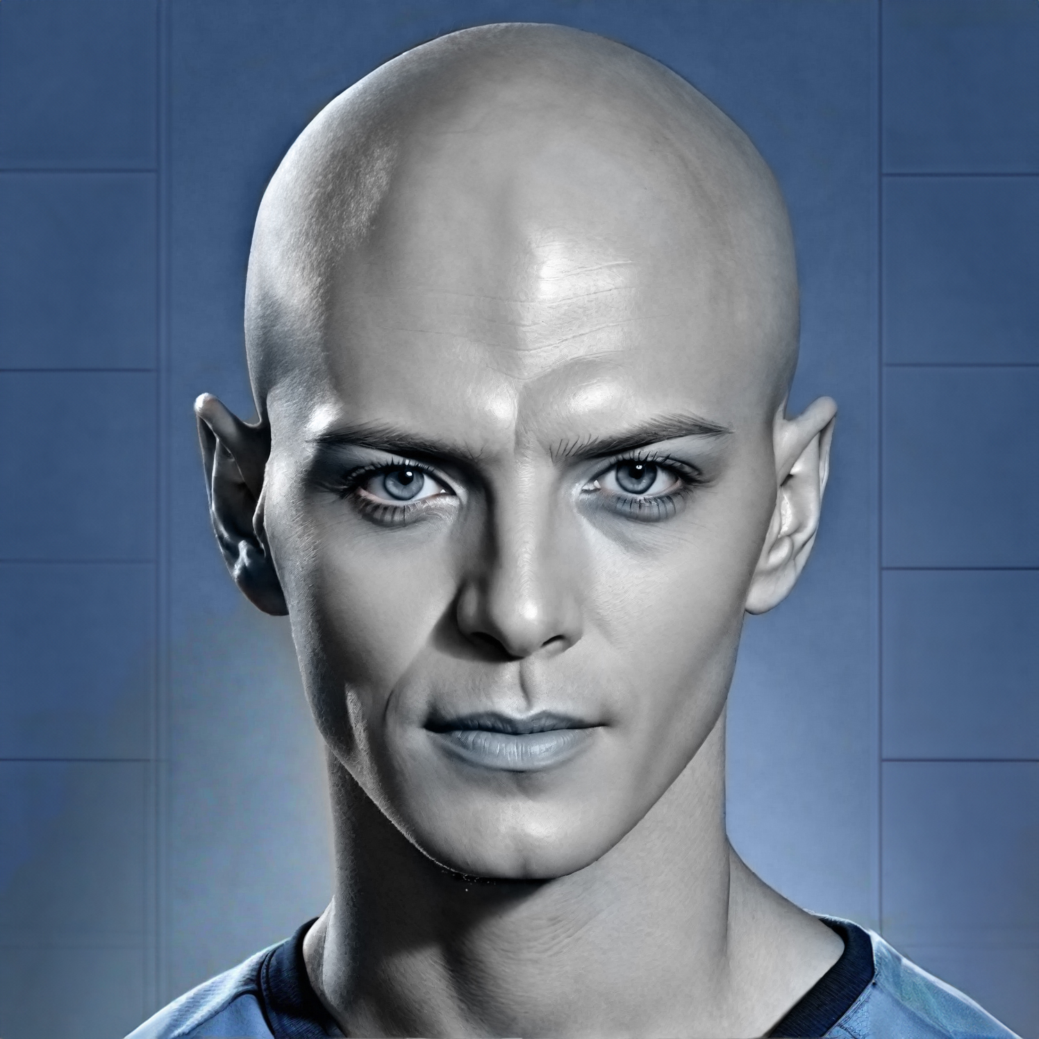 Physical Description | Xex is a close approximation of the perfect average humanoid specimen. With the Terran normal number of limbs and digits, and regular humanoid features, she is neither tall nor short, neither wide nor thin. In fact, she would blend into any Terran crowd, if it were possible to ignore the slight silvery shimmer to her skin. As she seems to constantly be in motion, this glimmer is even more pronounced. Her movements are as energetic as they are constant, marred only by a very slight limp. Although approaching middle age, her outer appearance seems little changed from her service jacket photo from the academy, albeit those features in the academy photos do seem subtly more masculine. |
