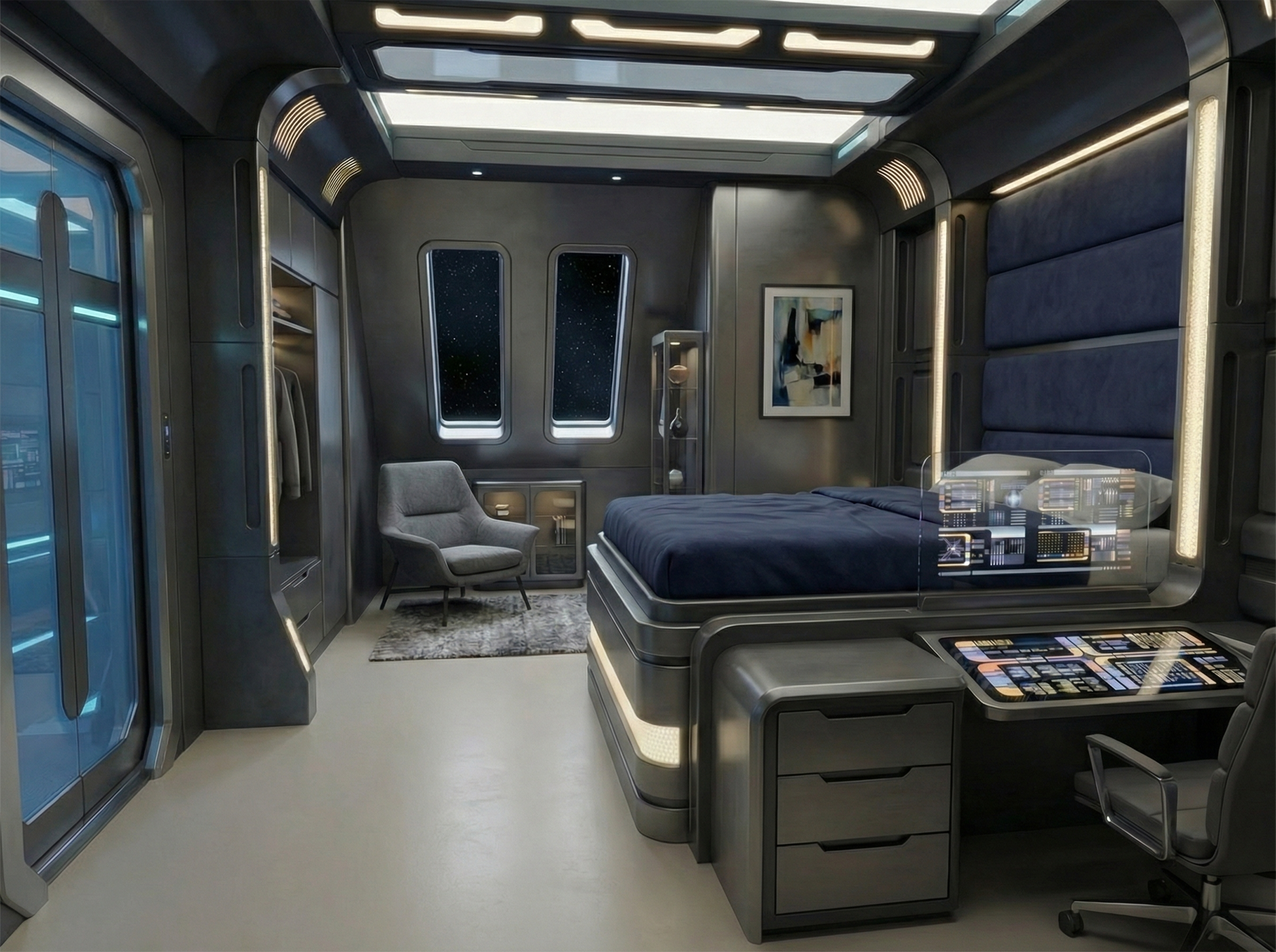 The Officers' Quarters of the Chief Medical Officer and Chief Counselor are located on Deck Two. Their quarters are near Sickbay.